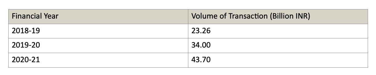 India since 2018 has witnessed a significant growth in digital transactions. The following table shows the steady growth of such payment mode:
